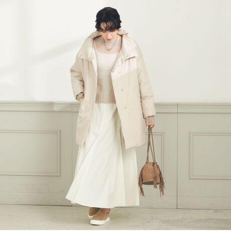[購入|3ヶ月レンタル]【撥水加工】高密度タフタ・エコファー使いロングダウンコート