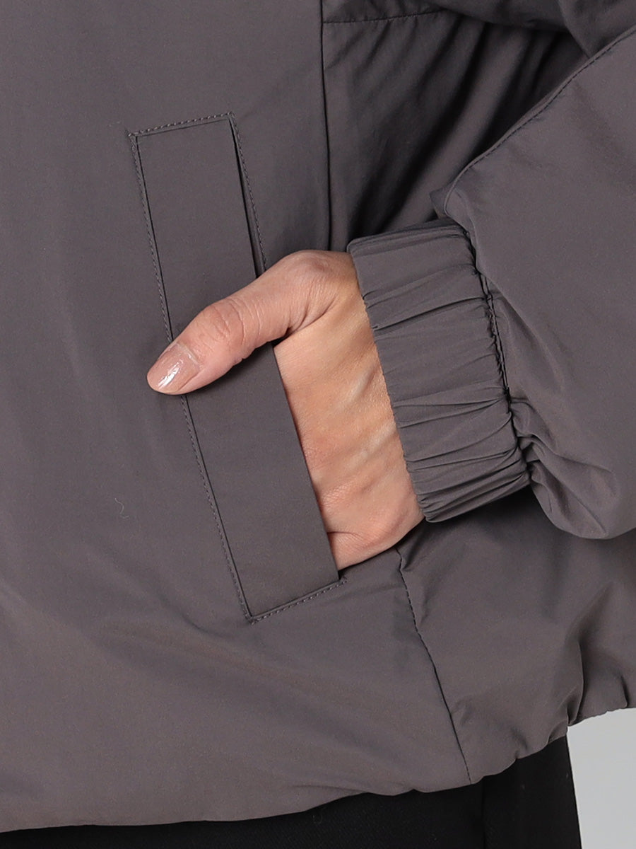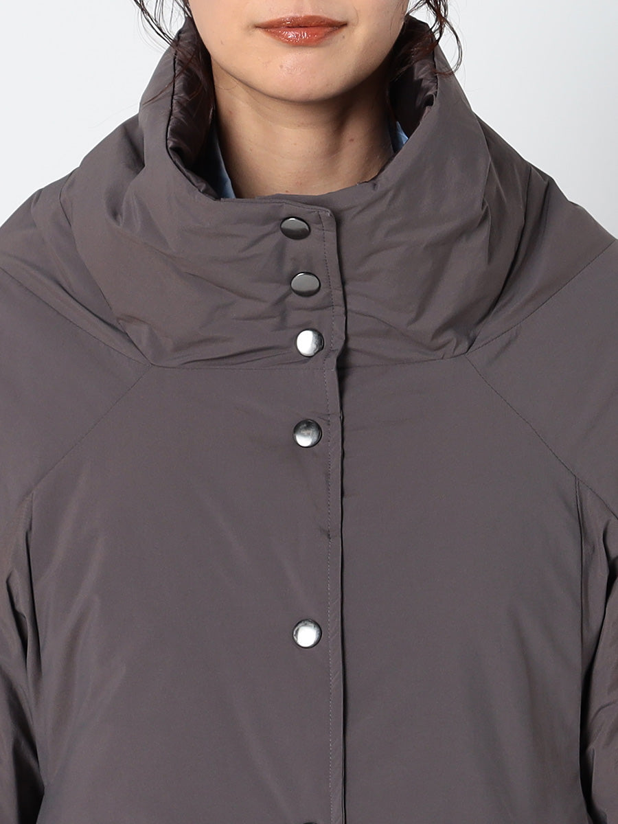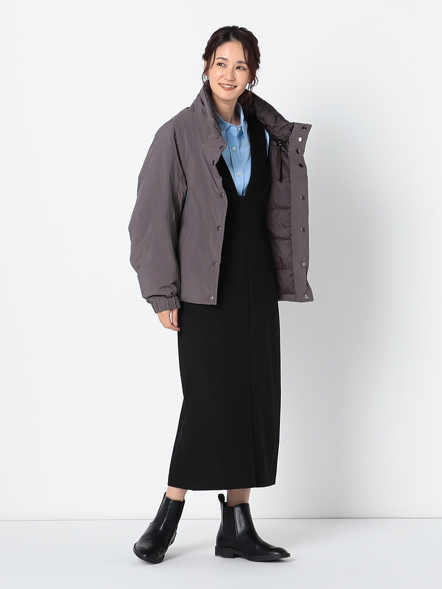 程よいボリューム感と、スッキリとした丈感のショートダウンです。リバーシブルで着用いただけますので、気分に合わせてコーディネートを。カジュアルにデニムスタイルや、ラフなワンピースなど着回しを楽しんでいただけます。