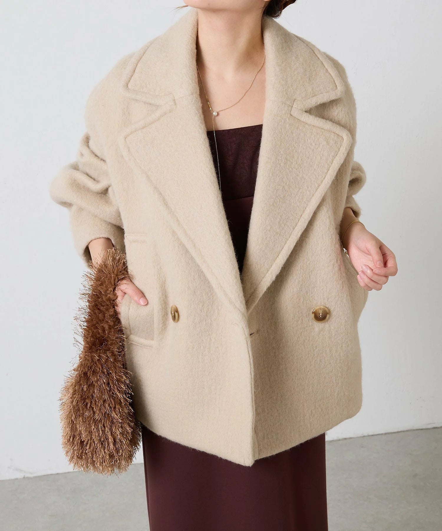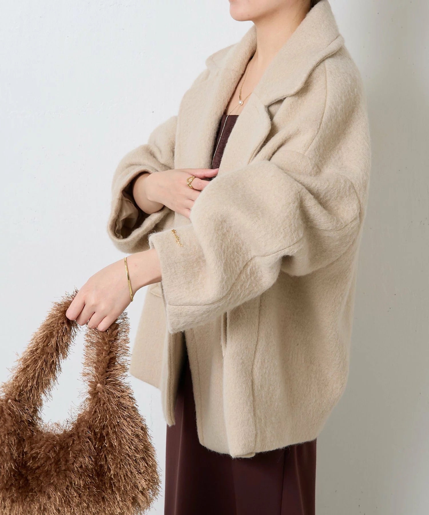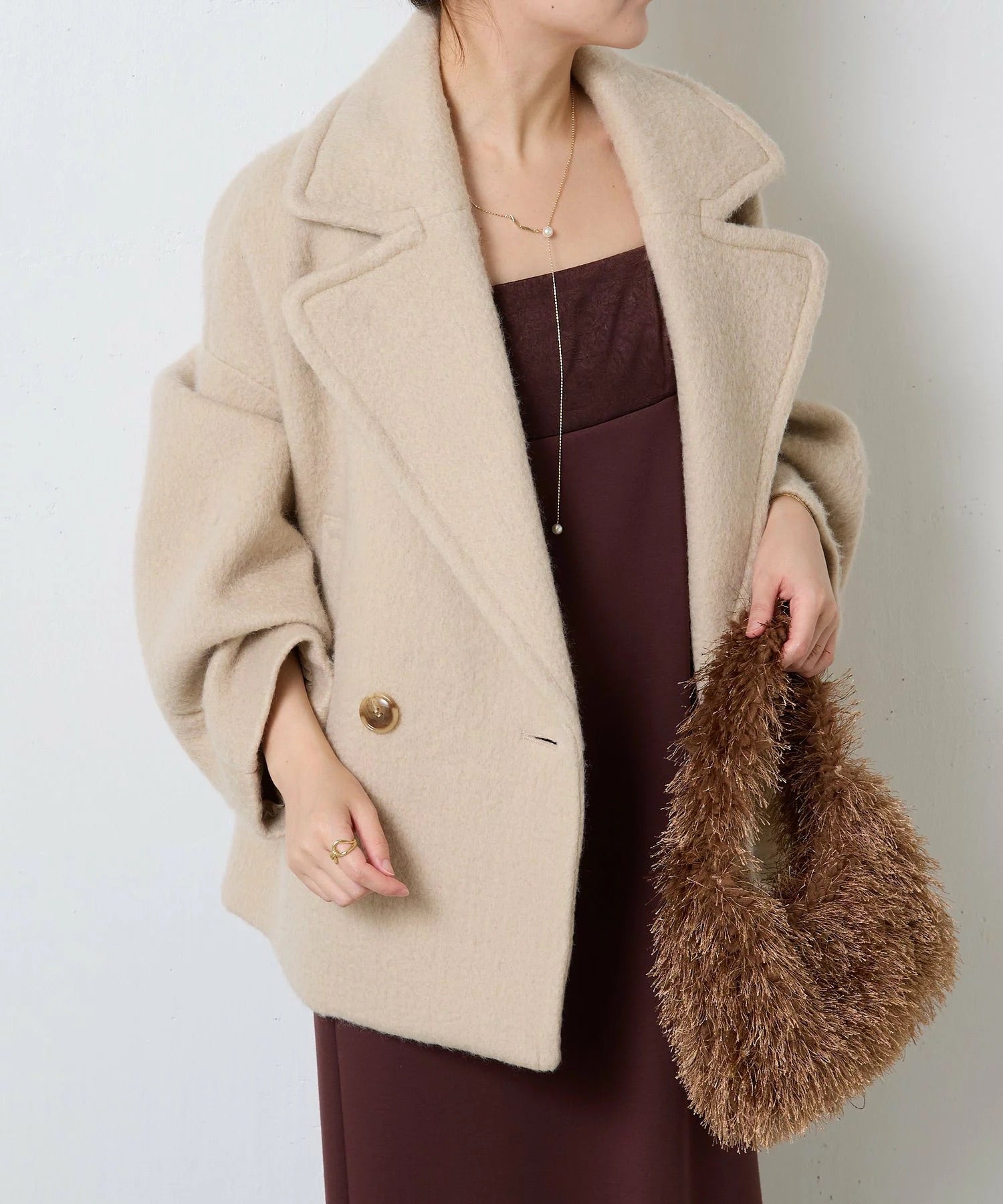 ・フロント部分は今年トレンドの大きな衿を取り入れており、おしゃれ度が高く小顔効果も◎