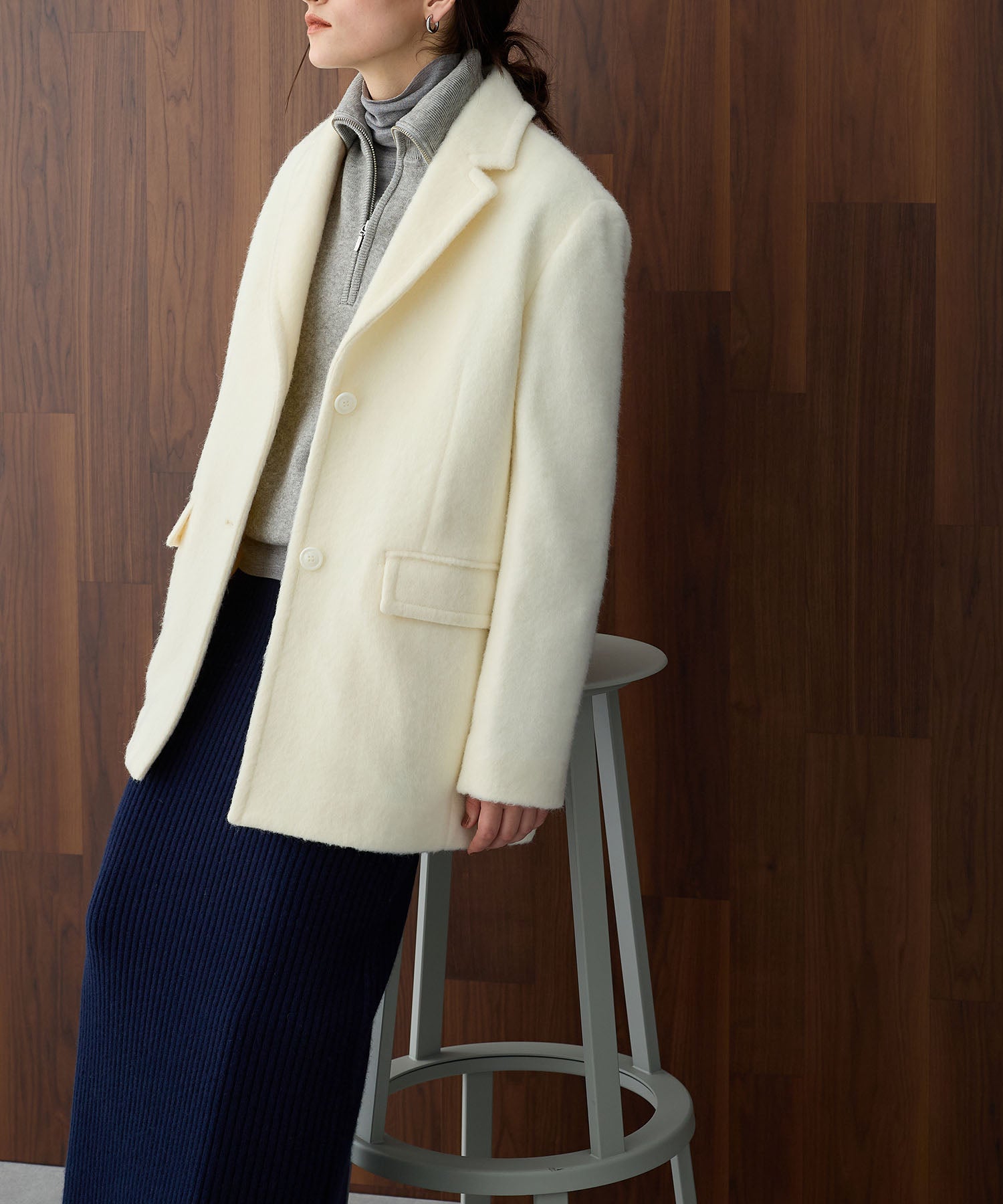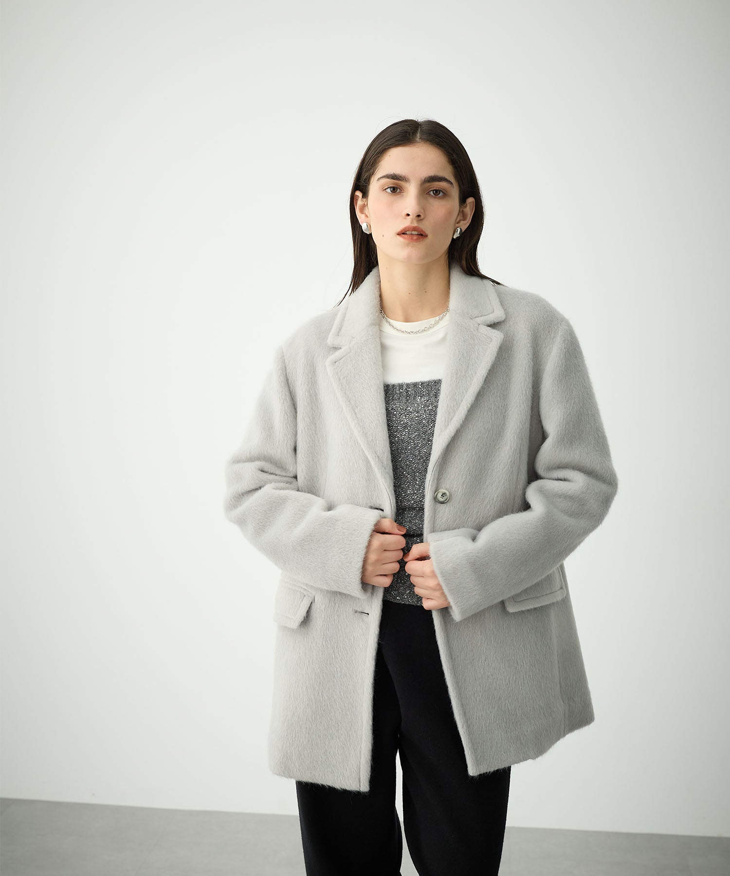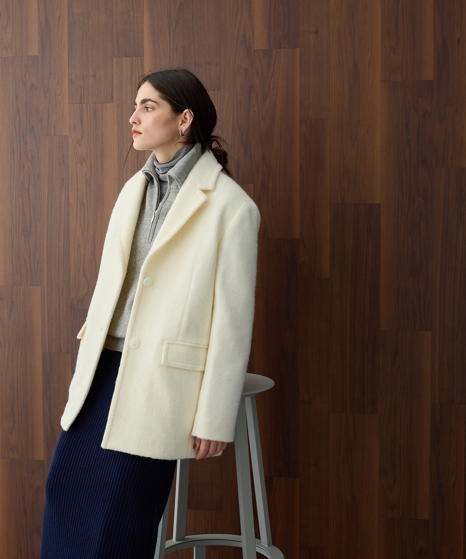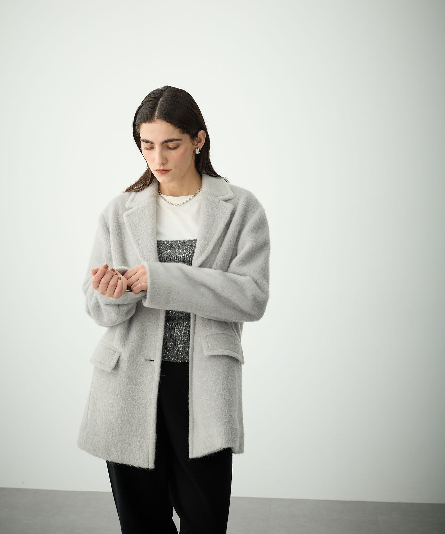 シャギーで高見えしつつジャケットにありがちな窮屈さがないサイズ感です。
