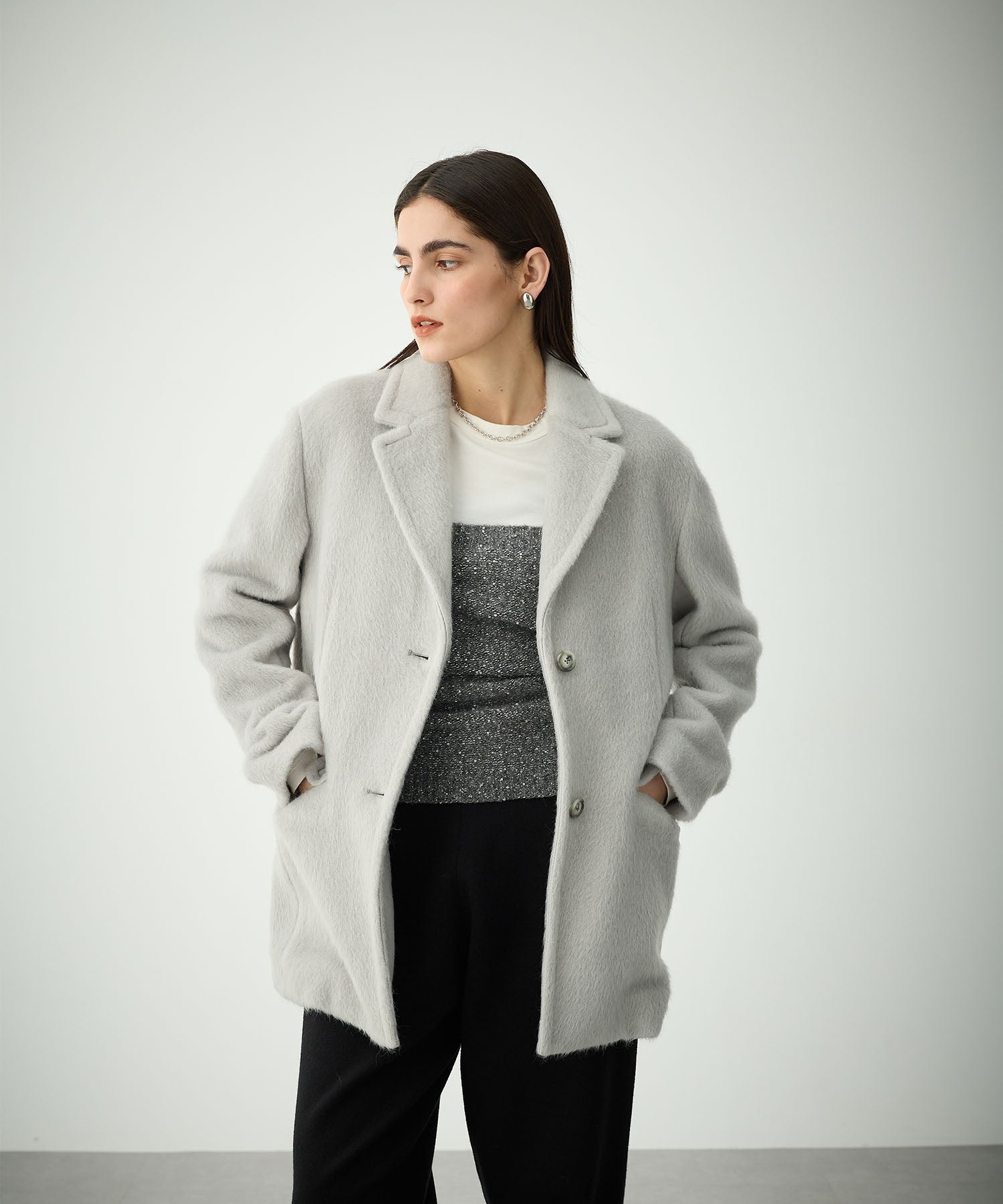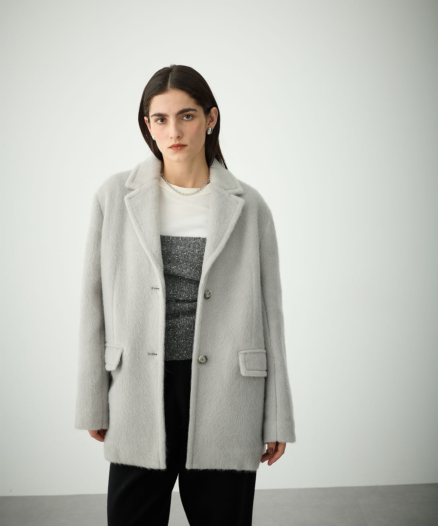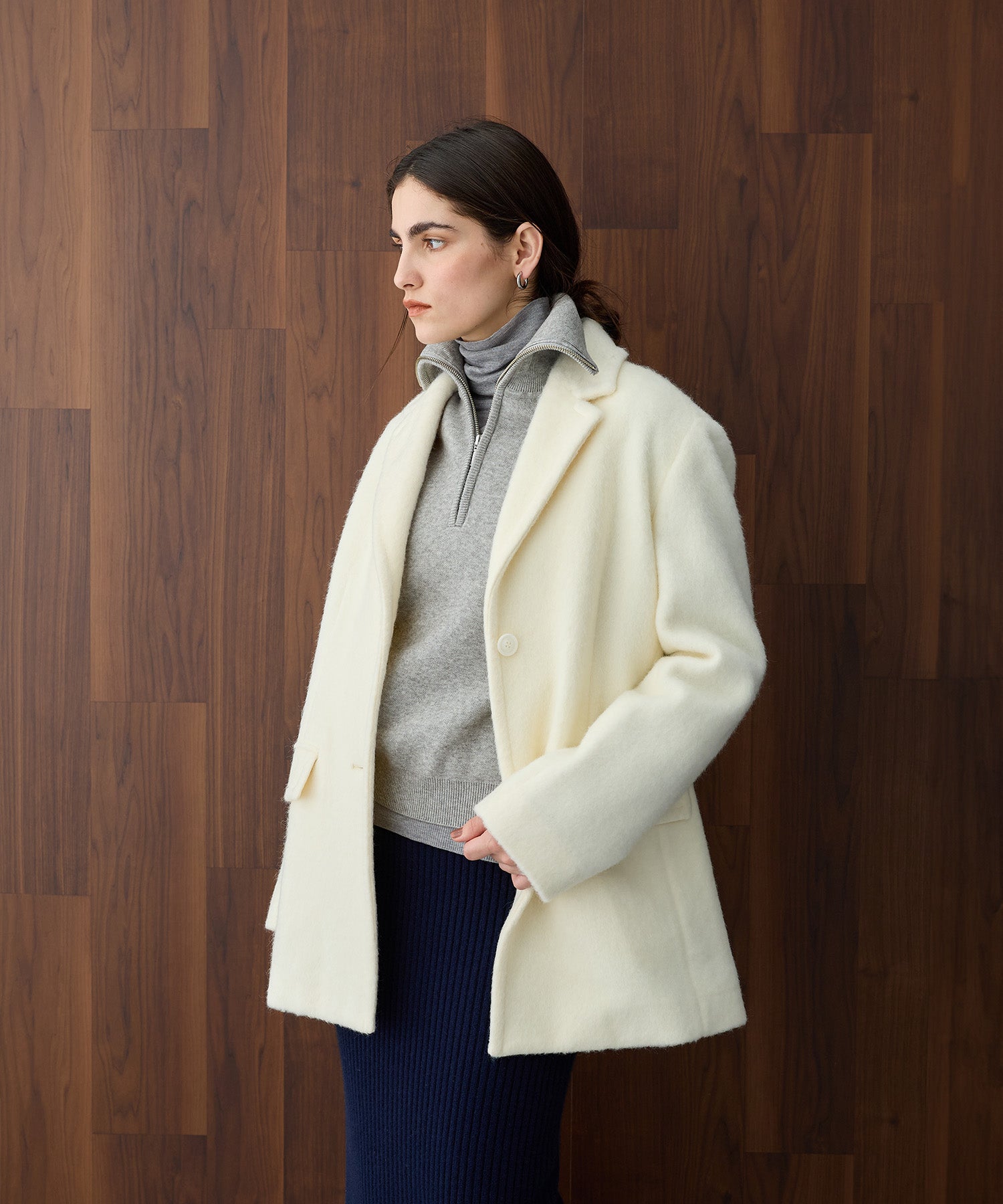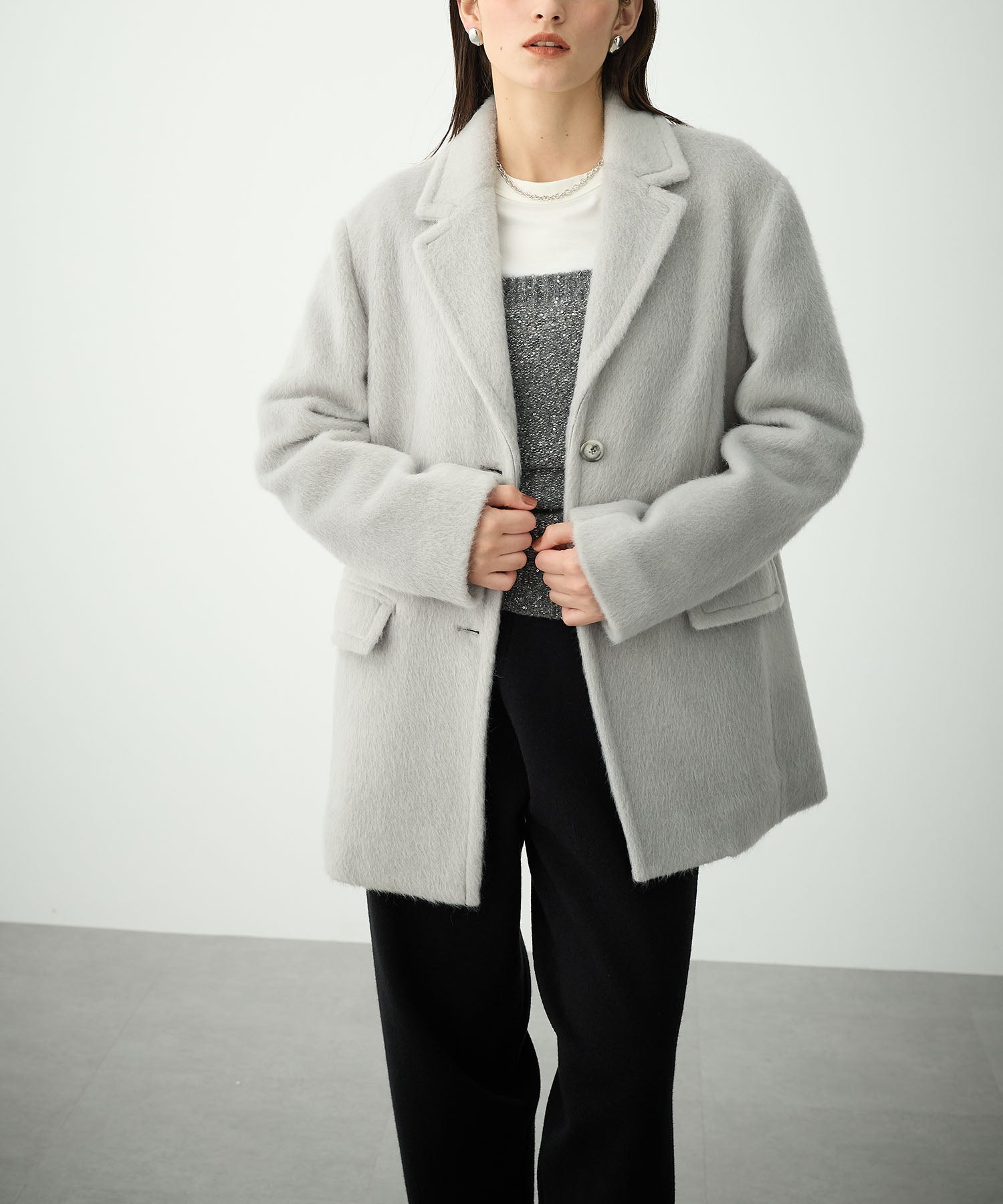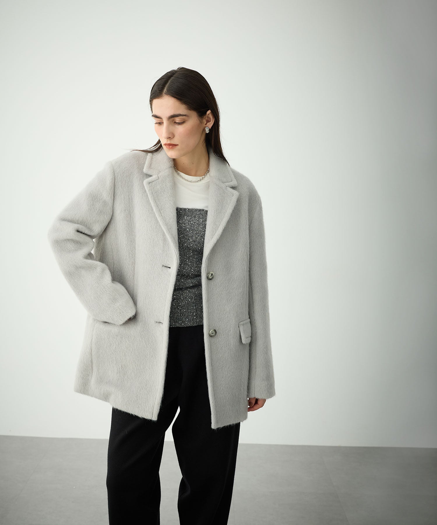 シャギーで高見えしつつジャケットにありがちな窮屈さがないサイズ感です。
