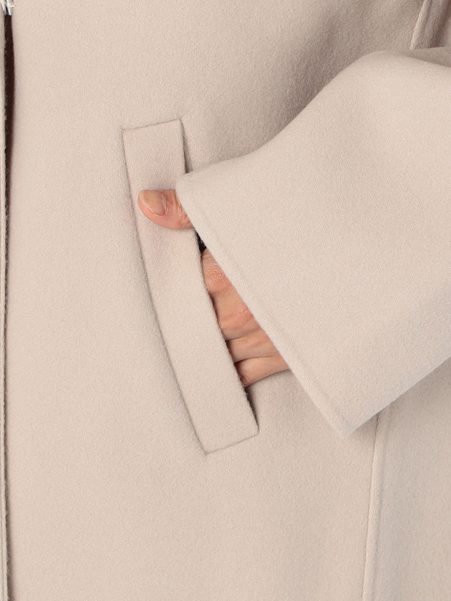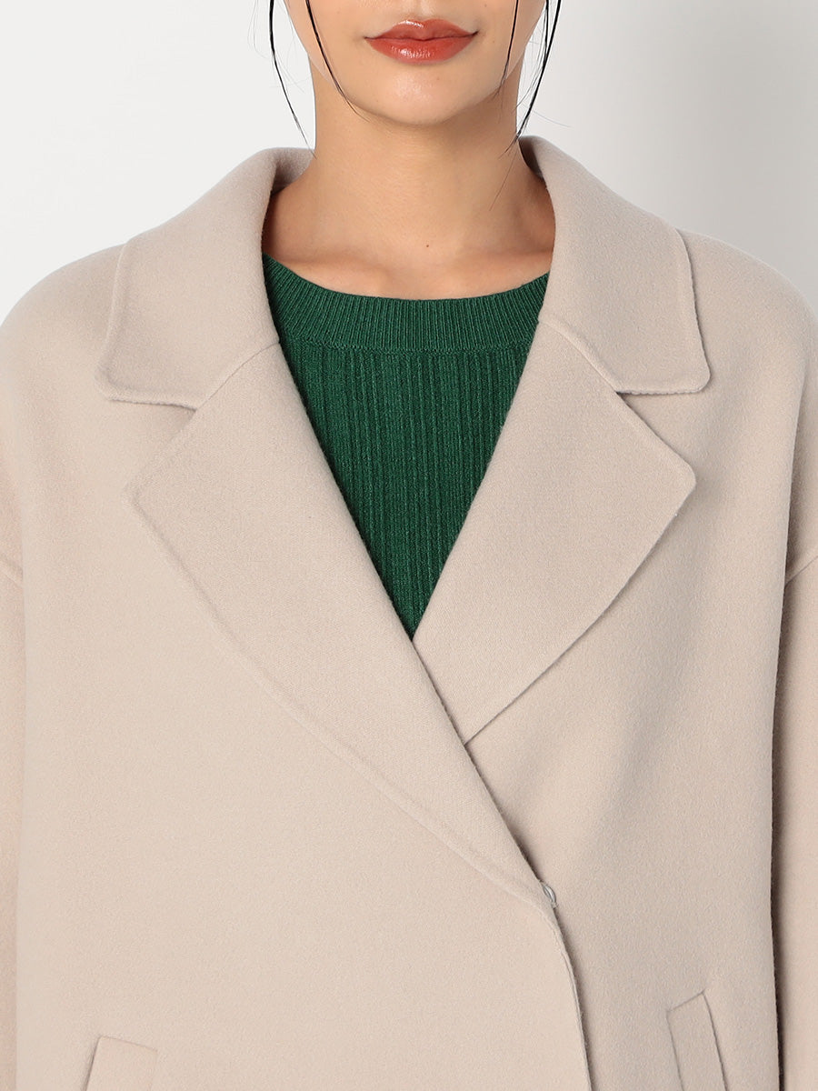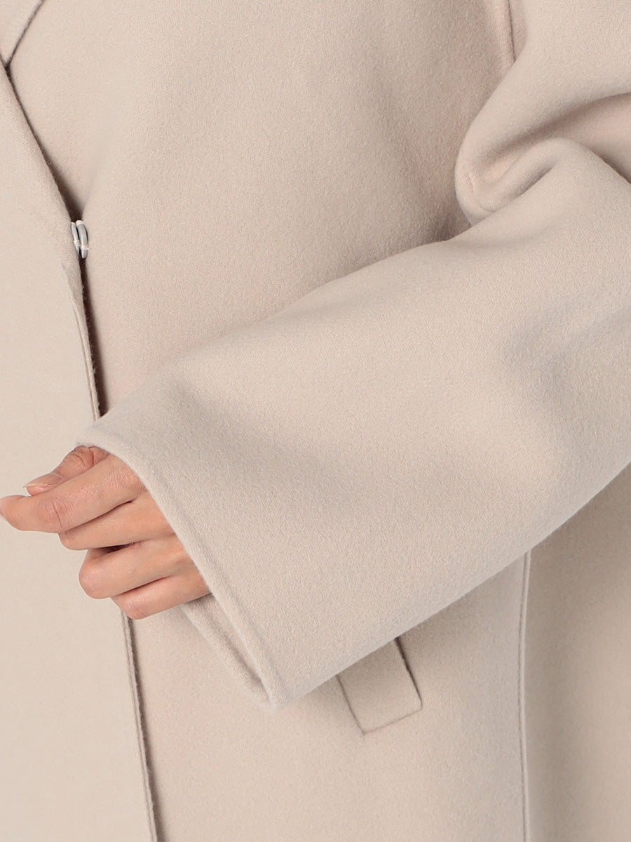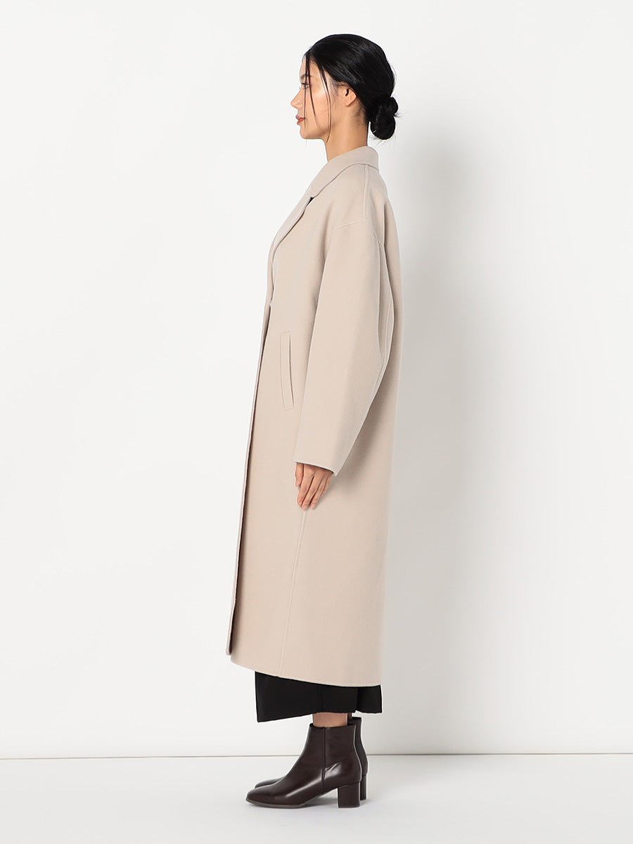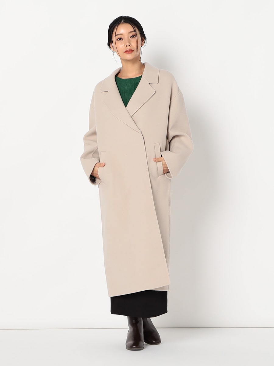 縦長の美しいシルエットが際立つふんわり柔らかなラムウールで作られたロングコート。ボタンを留めるとさらにすっきりと縦長に見えるようシルエットに拘った大人な逸品。高級感ある素材を生かしたエレガントなスタイルだけでなく、カジュアルなアイテムとも合わせられるアイテムです。